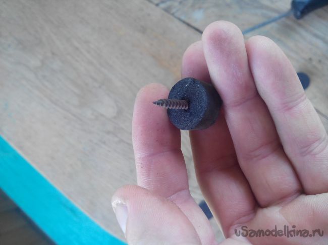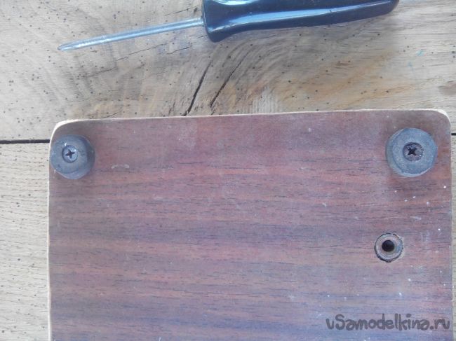 И в, предварительно заготовленное отверстие закручиваем ножку с шурупом.