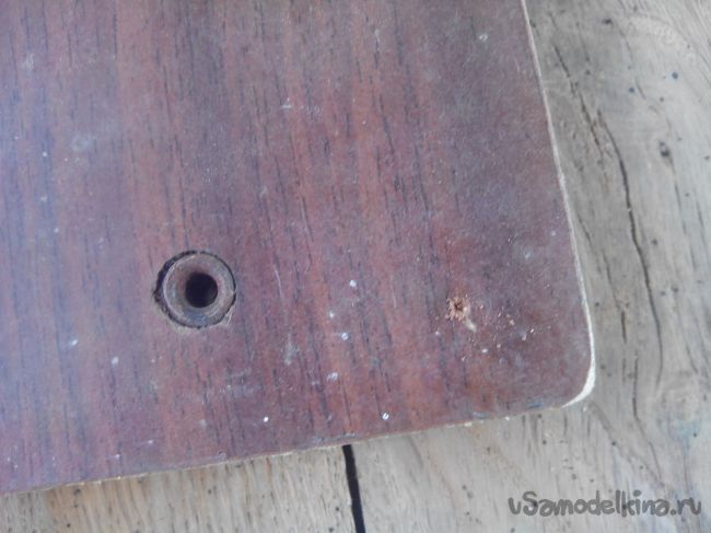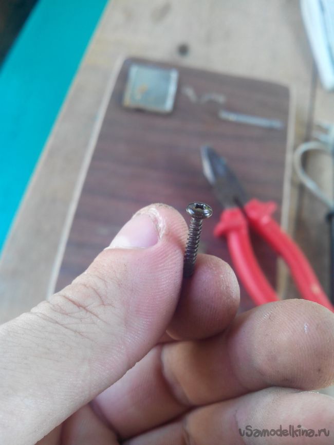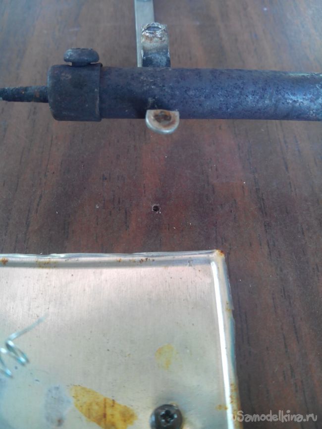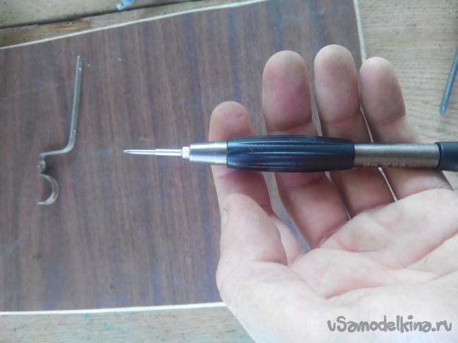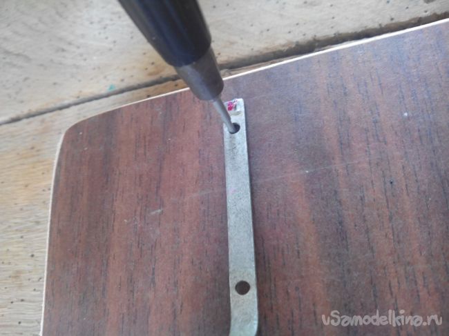 При помощи отвертки для мелких деталей проделал отверстие под два болтика, которые будут держать этот крючок.