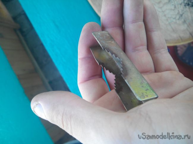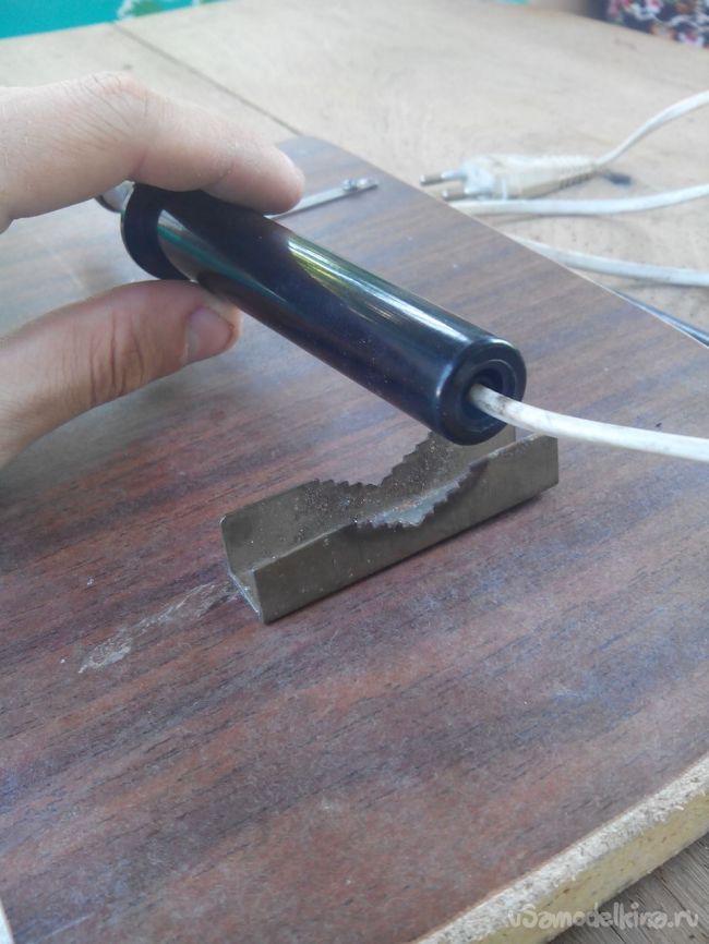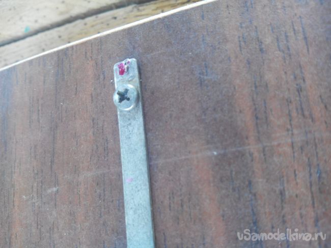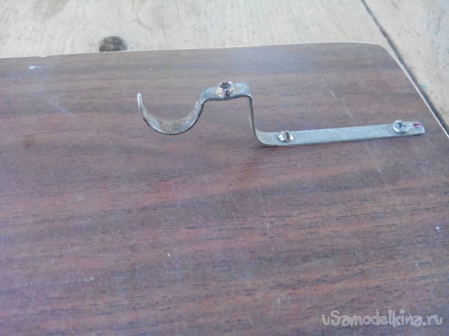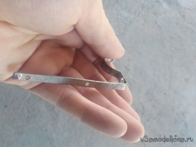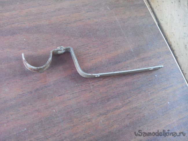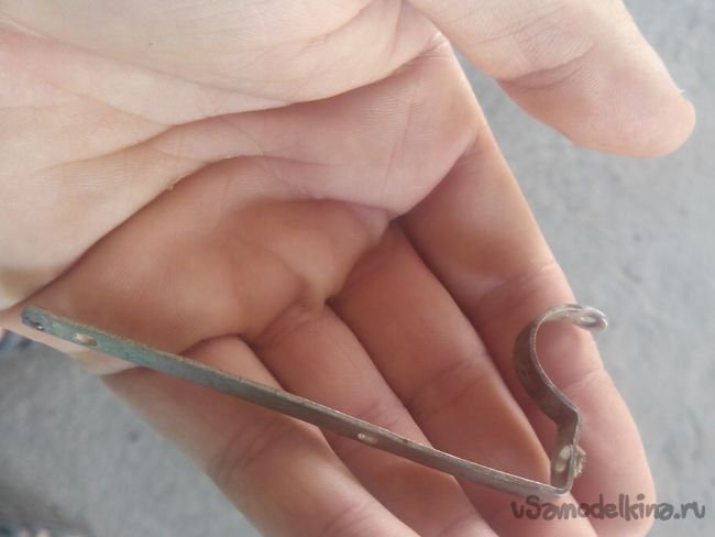 Следующее, что я сделал это изогнул железную пластинку в форме крючка, как на фото.