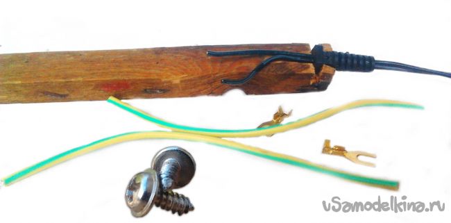 Припаять провод к высокоомному обычным паяльником вам не удастся, как не старайтесь, можно конечно сначала электролизом перенести немного меди на концы, но на бруске мы закрепим его парой гвоздей или шурупов.