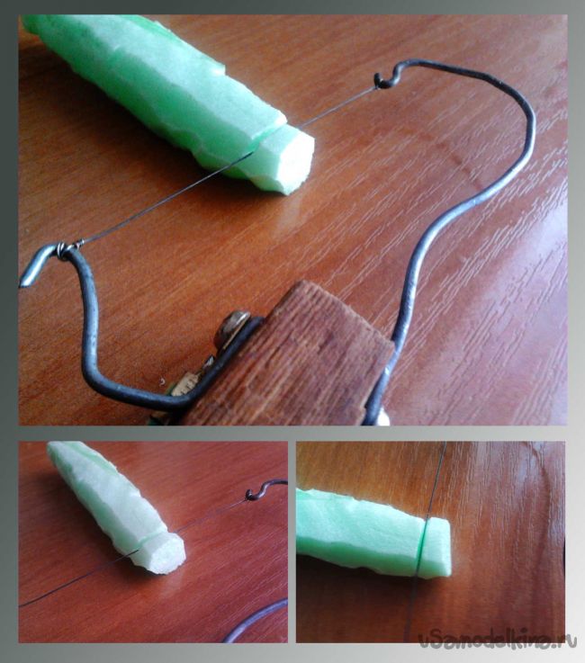 Основой для температурного резака пенопласта будет небольшой деревянный брусочек. Вы можете выбрать для себя любую диэлектрическую ручку или выточить, например, на токарном станке красивую и удобную. Мне подходит и такая, как на фото, ей удобно работать, она имеет форму прямоугольной параллелепипеда, её длинна 13 см, а ширина с высотой по 1,4 см.