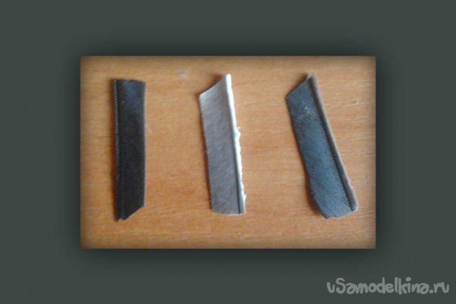 Для удобства стрельбы надо сделать канавку для того чтобы туда заходила тетива-резинка и пальцами мы брались за саму стрелу (делаем это полотном).
