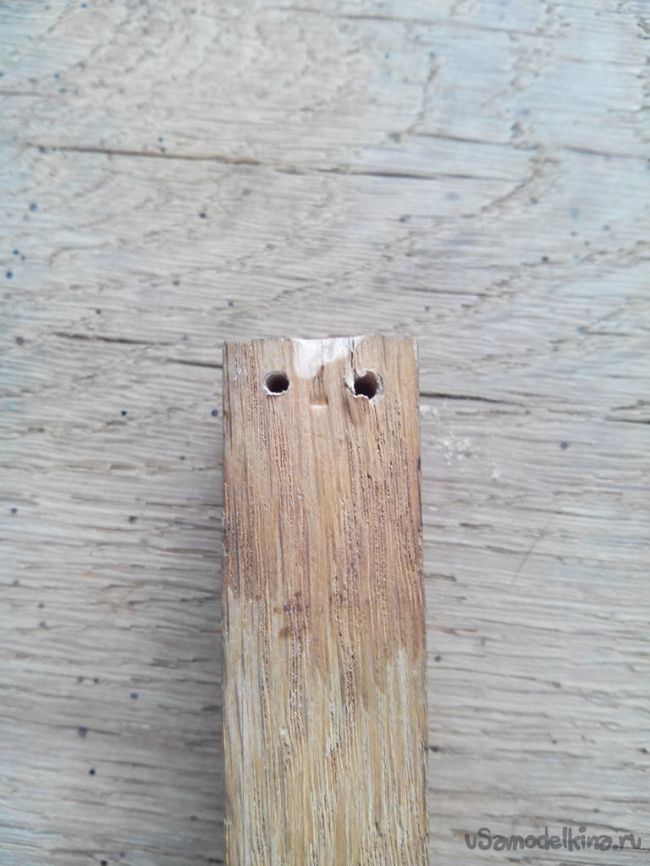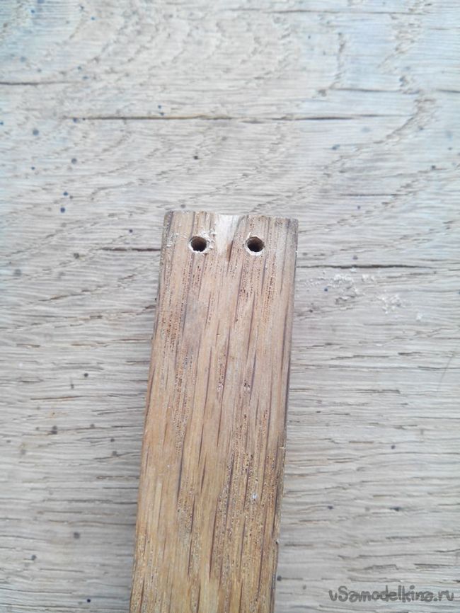 Первым шагом будет просверливание отверстий в нашей ручке для выжигателя, делается это с помощью дрели и мелкого сверла, которое подбирается по диаметру вкручиваемых болтов.