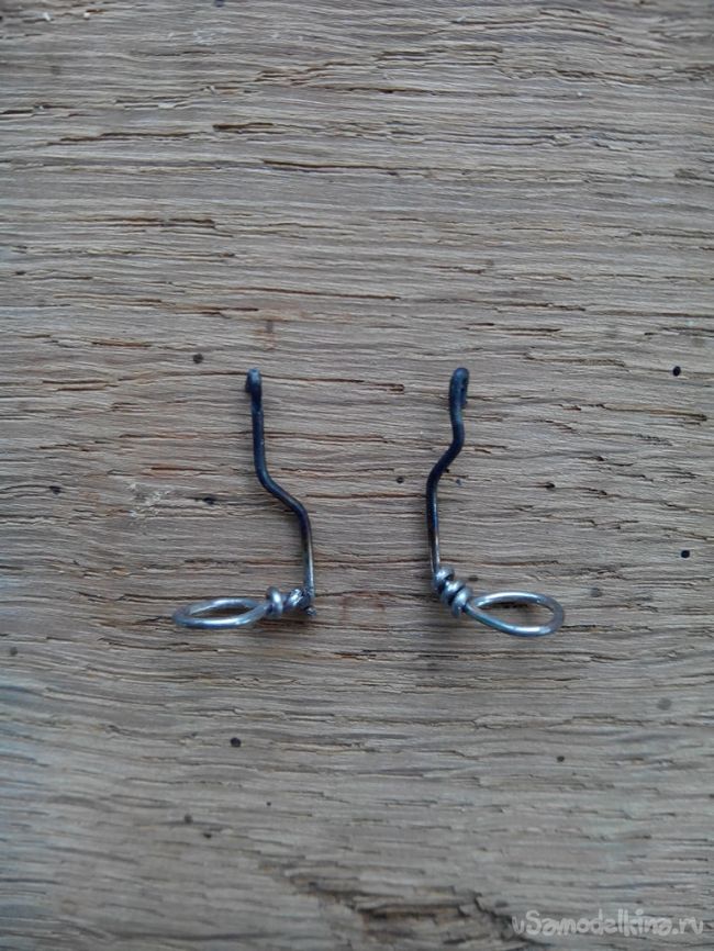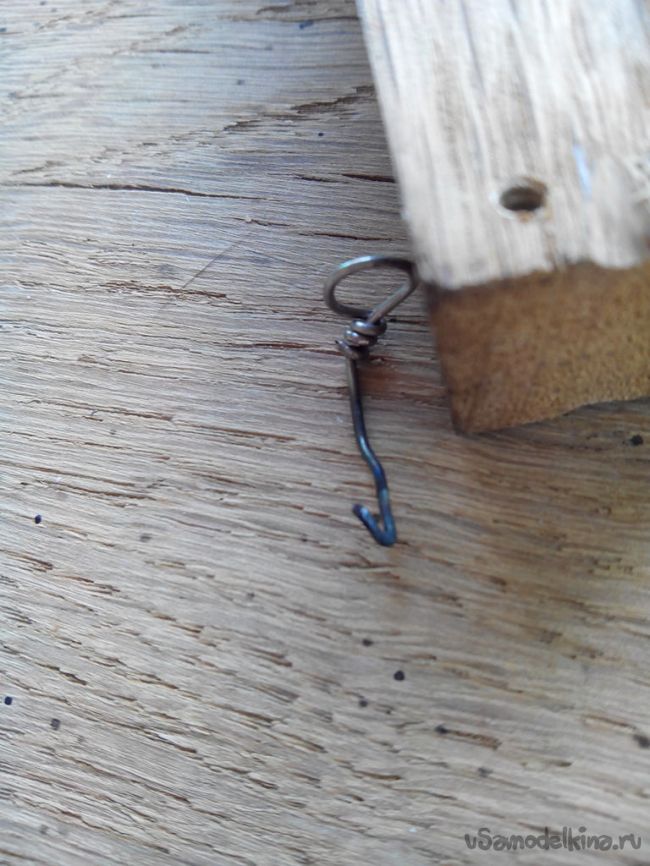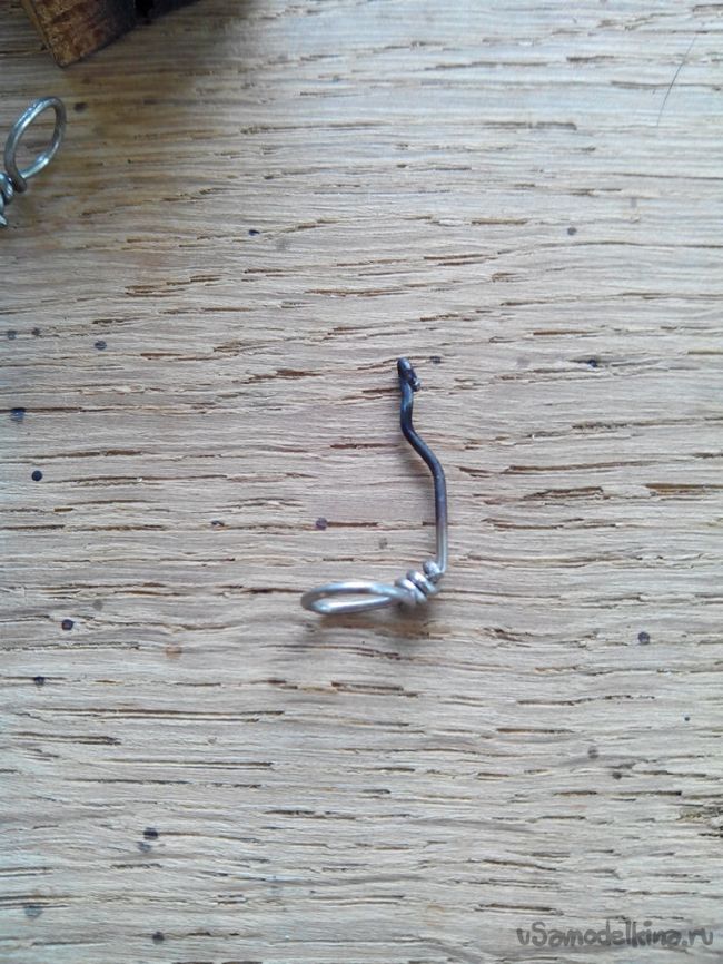 Добавим на них наши крючки из скрепок, повернуты они будут внутрь.