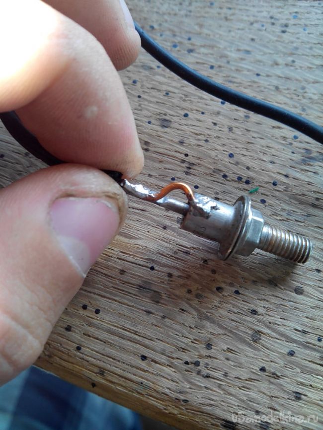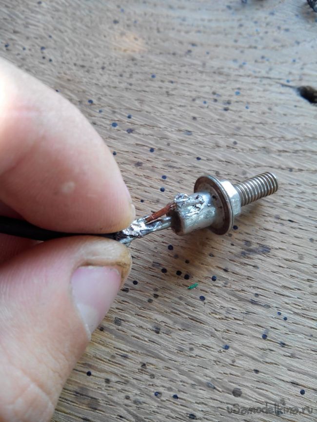 Так как диод служит преобразователем из переменного тока в постоянный, то нам необходимо исключить это свойство диода, поэтому запаиваем перемычку из медной проволоки между массой диода и его контактом. Делаем тоже самое со вторым.