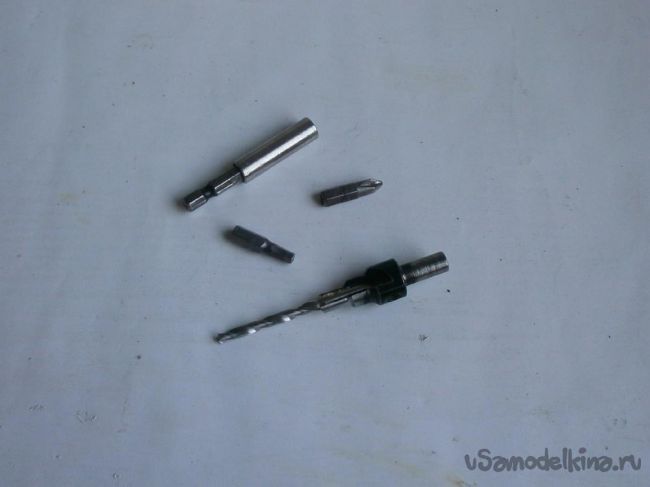 конфирматного сверла, крестовой и шестигранной биты, а также удлинителя для них,