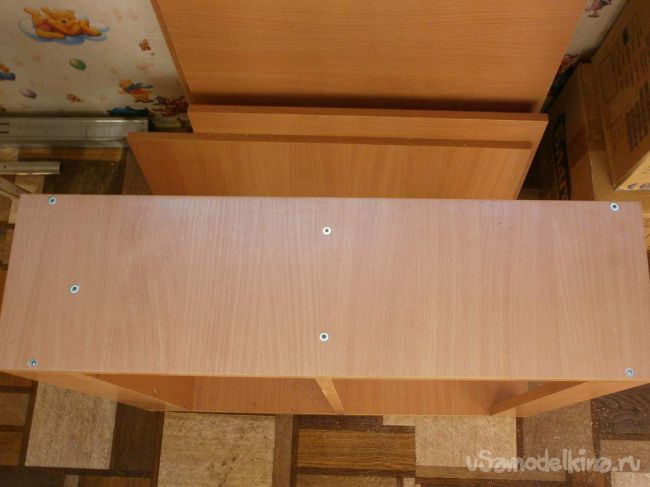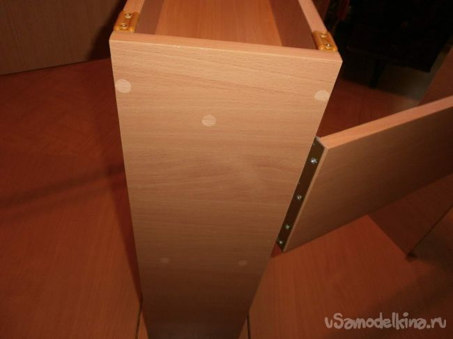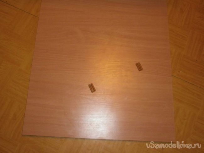 Заклеиваем головки конфирматов декоративным кружками (исключительно для эстетики),