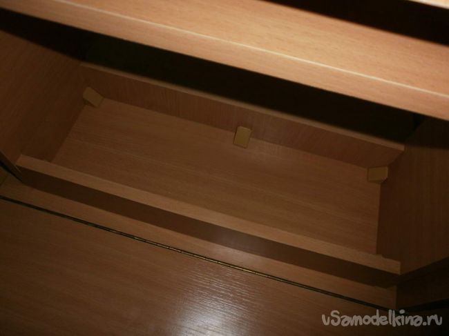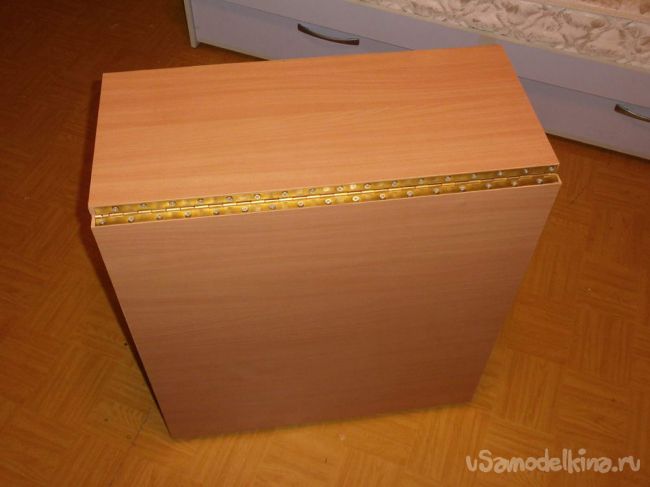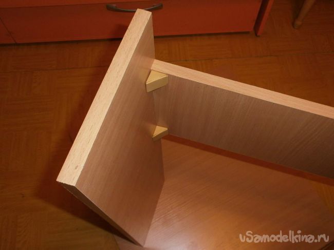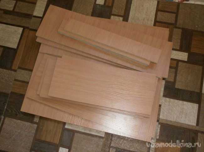 После того, как мы разобрали, какая деталь, откуда и для чего, обклеиваем торцы кромкой. Ничего сложного и мудрого в этом нет: горячим утюгом прижимаем кромку, проглаживаем, а затем ещё раз, пока она не остыла, сильно прижимая, разравниваем войлочным бруском.