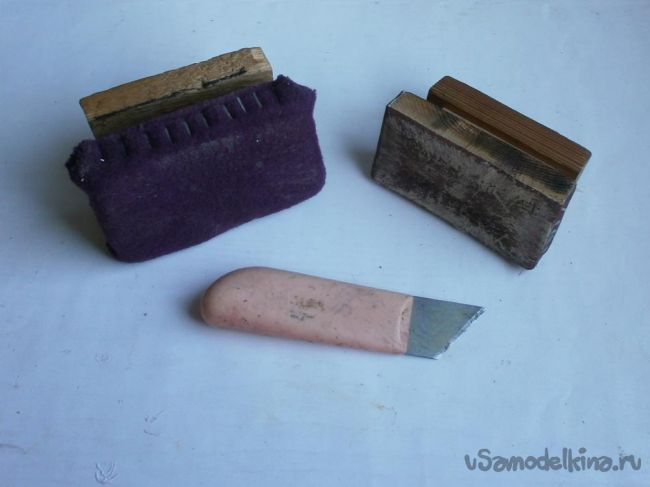 столярного ножа, брусочков с наждачной бумагой и войлоком,