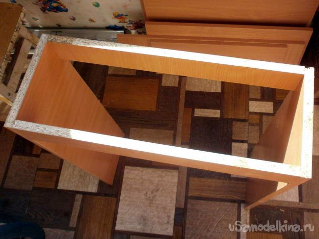Ножом срезаем (ни в коем случае не обламываем на торцах) излишки кромки. Одна плоскость готова. Оклеиваем с других сторон деталь, и так, одну за одной, пока все не будут готовы. Как по мне – это самая нудная часть сборки корпусной мебели, хотя я знаю немало людей, для которых это – своеобразный релакс и успокоение за работой. И хотя стоит оклеивать со всех сторон (даже с тех, которые будут прилегать к другим деталям), я клею только то, что будет видно. Знаю, что это неправильно, но так.