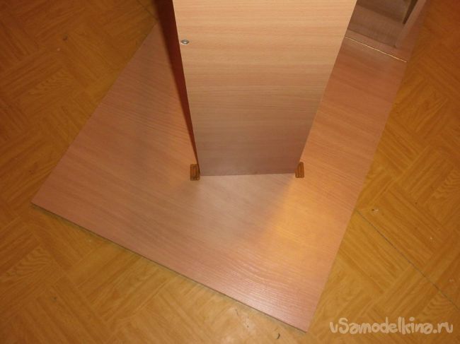 Да, и не забудьте пройтись бруском с наждачной бумагой по обклеенным краям. Хотя если у вас – хороший (но не сильно острый, иначе можете порезать ламинированный слой ДСП) нож, это и не обязательно.