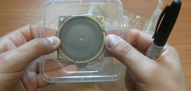 Первым делом нужно перевести круглую форму динамика на крышку емкости.