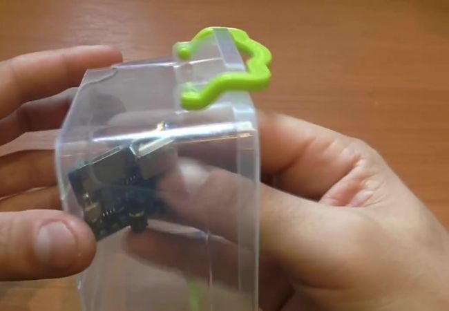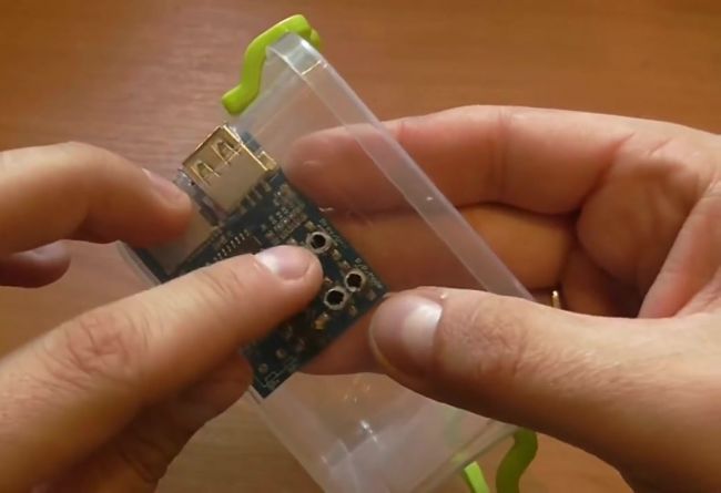 Синий разъем нужно отпаять, поскольку он будет мешать беспрепятственной установки платы в емкости.
