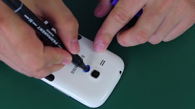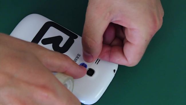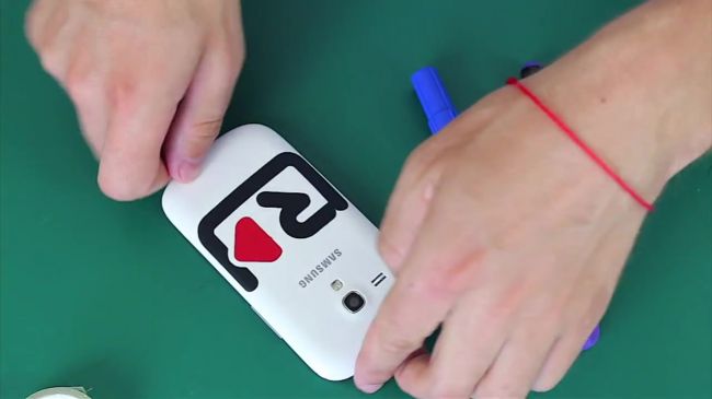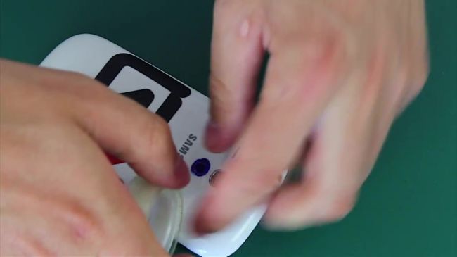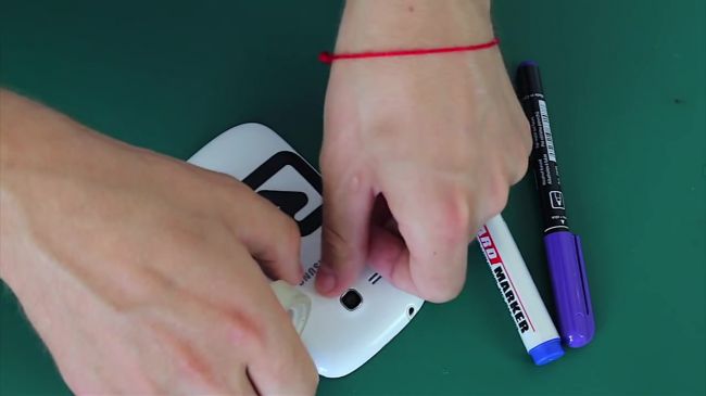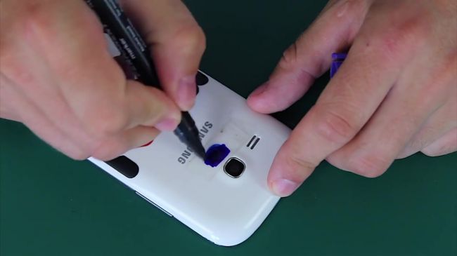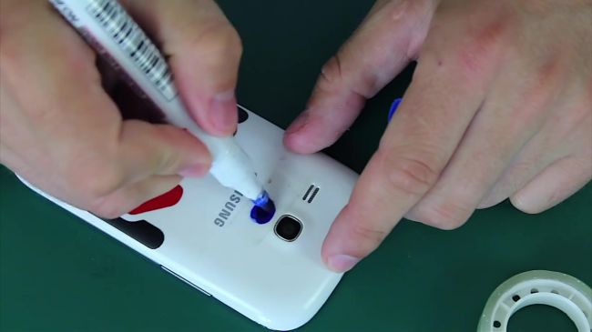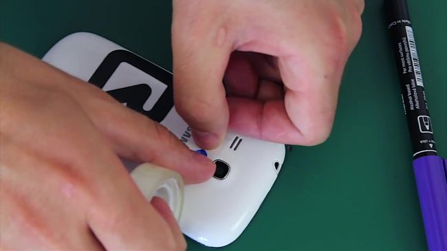 Берем мобильный телефон и заклеиваем на вспышку кусок скотча. Отрезаем лишнее.