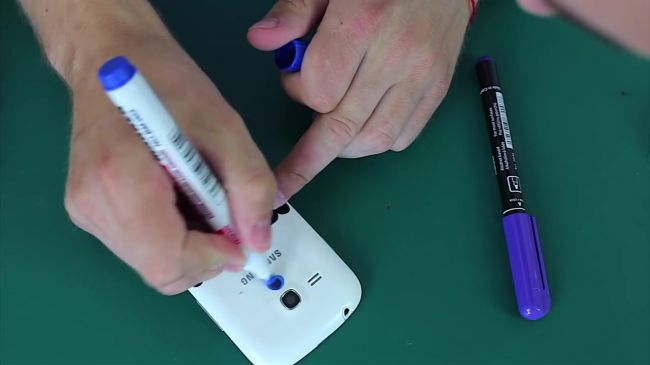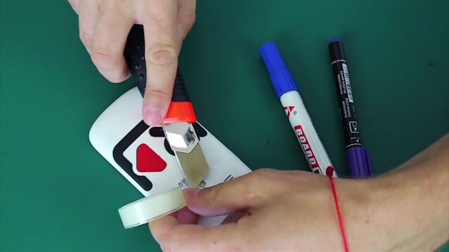Хорошенько закрашиваем кусок скотча синим маркером.