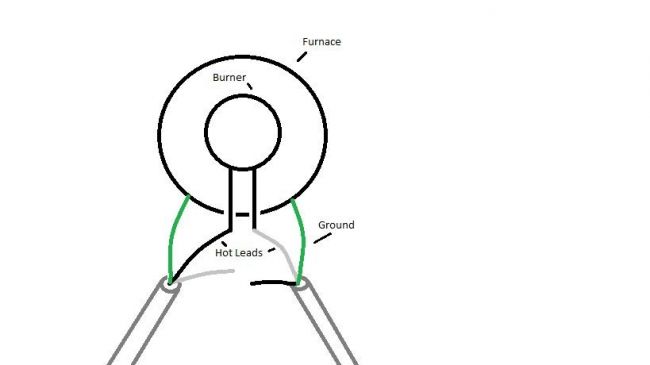 В качестве нагревательного элемента будет использоваться спираль от электроплитки с сопротивлением 28 Ом. В рассматриваемом примере спираль подключается при помощи двух проводов по 120В. Еще желательно заземлить печь, так ее использование будет безопаснее.