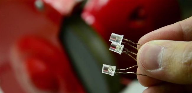 Если вам нужен рассеянный свет в вашей подсветке, то можно пойти на небольшую хитрость и сточить головки светодиодов. Так их свет станет мягче. Также можно перекрасить сточенные места в разные цвета, чтобы подсветка была разноцветной.