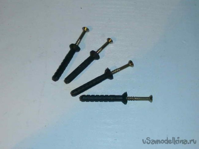 • и пять (хотя и четырёх хватит «за глаза») дюбель-гвоздей или просто пластиковых дюбелей с длинными саморезами,