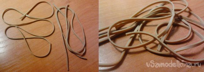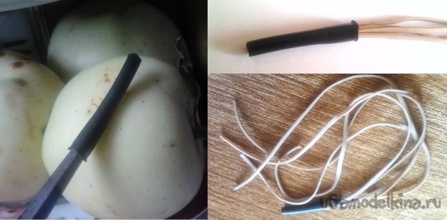 А жгут (в моем случае сочетание нескольких тонких резиночек) засовываем в другой, оставшейся конец и хорошо закрепляем тонкой проволокой или капроновой нитью, делаем так чтобы острые концы не торчали.