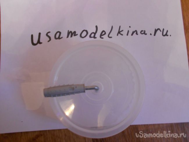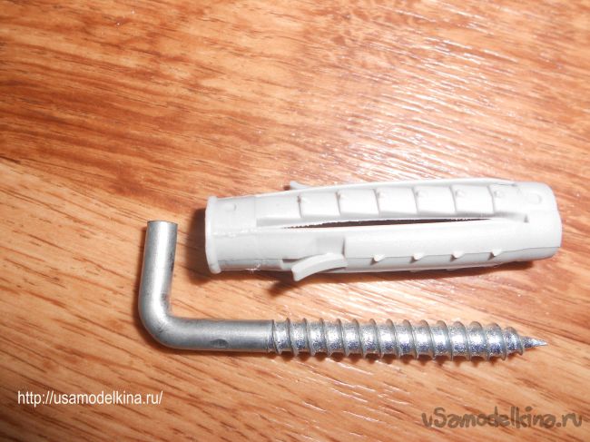 Дюбель ( d=1 см) с изогнутым на 90 градусов гвоздем (d=0,5 см).