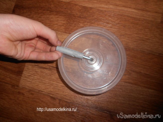 4. Берем дрель со сверлом d=0,6 см и просверливаем отверстие.