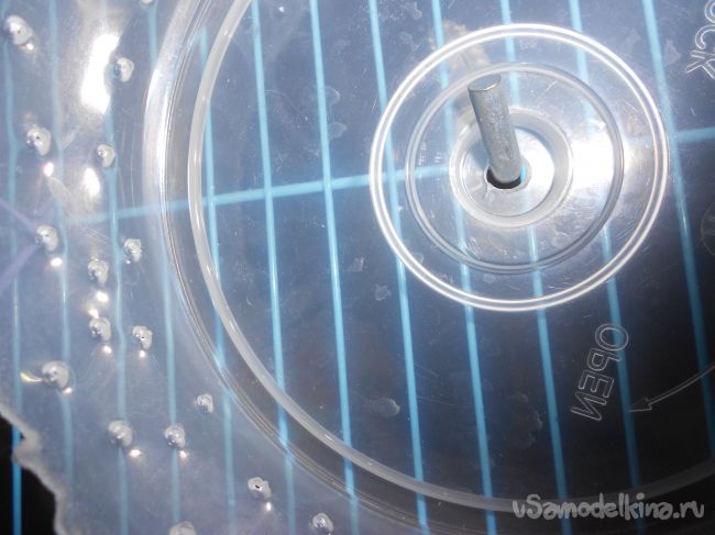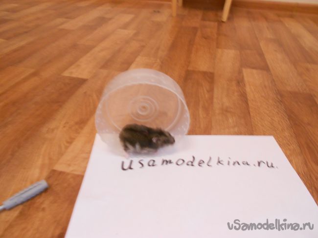 Ну вот почти готово. Отверстия шилом мы делали для того чтобы хомяк не скользил когда будет бегать.