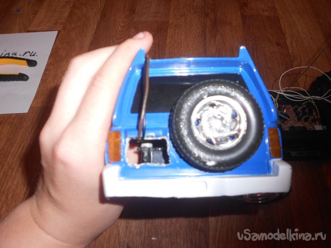 8. Ну вот почти все ,осталось только припаять провода к выключателю и приклеить светодиодную ленту к крышке от питания машинки.