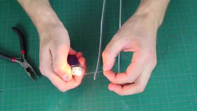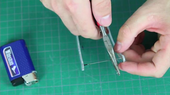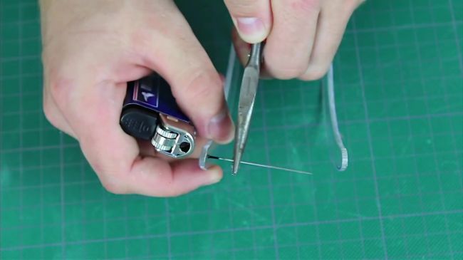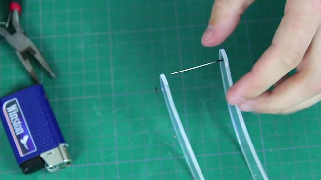 В завершение необходимо установить иглу у края ножа. Для этого хорошенько разогреваем ее зажигалкой и втыкаем ее в оргстекло так, чтобы она ни в коем случае не прошла насквозь.