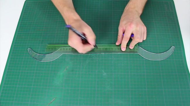 Прикладываем трафарет к оргстеклу и обводим его контур при помощи маркера. Отметим, что трафарет нужно обвести два раза в зеркальном отражении.