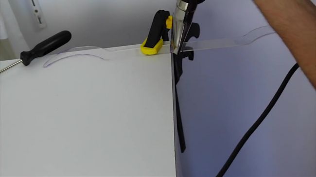 У этих отметок необходимо разогреть оргстекло и согнуть конструкцию вдвое.