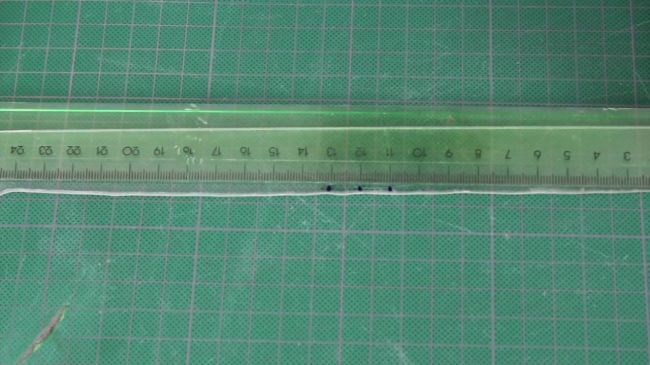 Теперь нужно определить центр полученной заготовки. Отмечаем его, после чего делаем метки, отступая по бокам на 1 см.