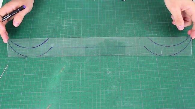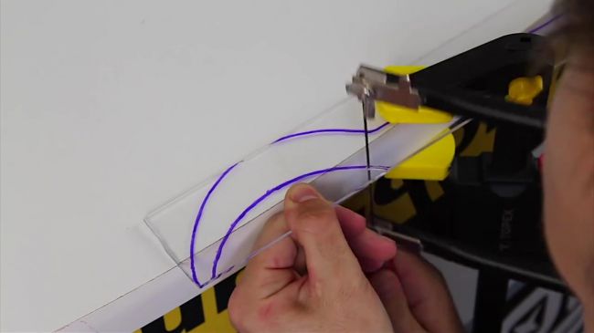 Вырезаем все лишнее из полоски оргстекла при помощи лобзика.