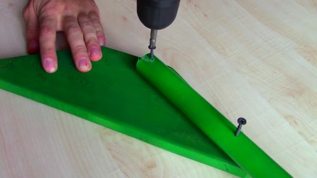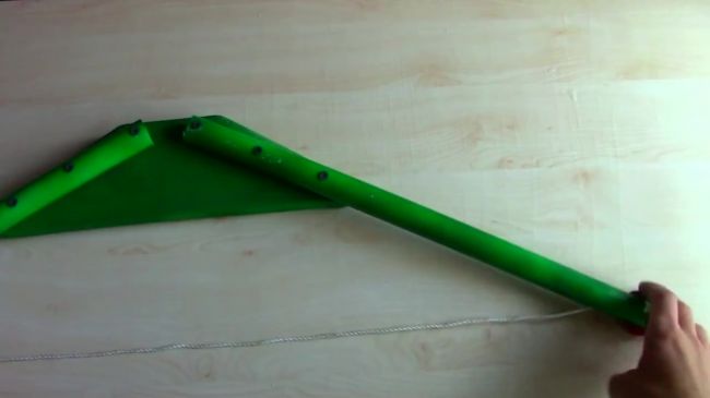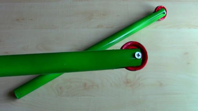 У краев этой рукояти под определенным углом нужно прикрепить трубки плеч с помощью саморезов.
