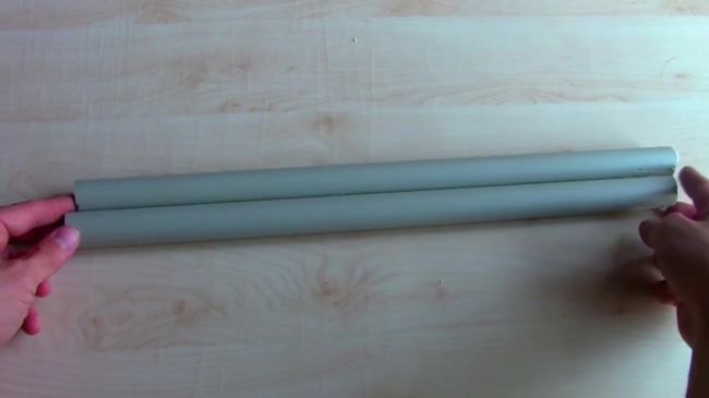 Первым делом нужно изготовить плечи для нашего лука. Для этого вырезаем два куска трубы длиной 44 см. По словам автора, чем толще будут используемые при изготовлении лука трубы, тем мощнее будет полученный лук.