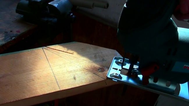 Перейдем к изготовлению рукояти. Для этого чертим рисунок на деревянной доске и вырезаем с помощью электрического лобзика.
