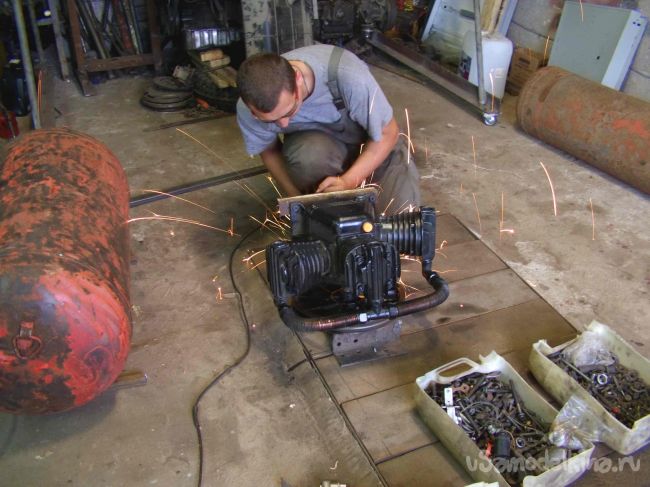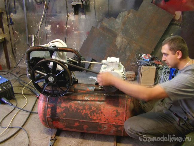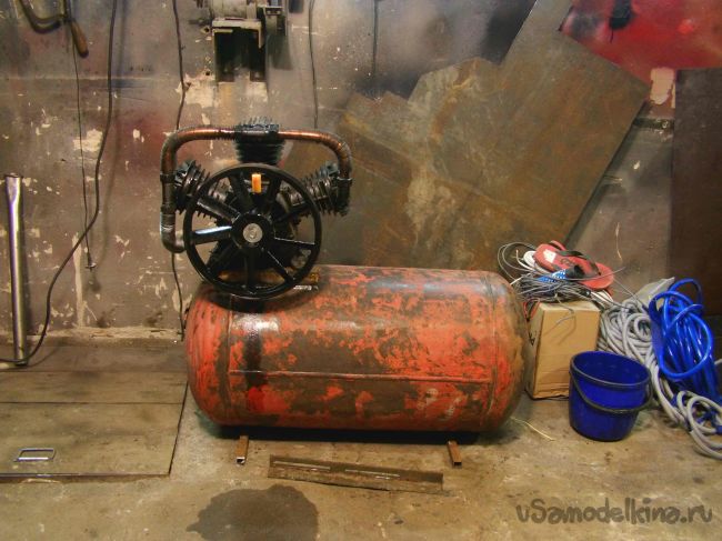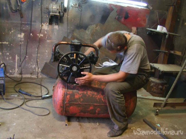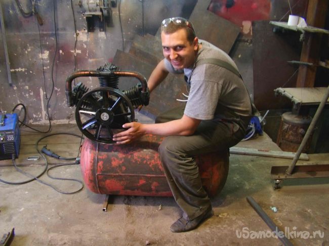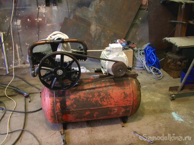 Для пескоструйной обработки и для малярки, решили собрать себе нормальный такой компрессор. Купили голову компрессорную 3-х поршневую Forsage TB390 (7,5кВт, производительность 900л/мин, давление 8бар), Петрович припер пару старых газовых баллонов и понеслась)))