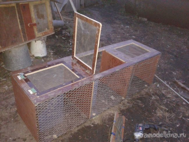 В итоге получается вот такая заготовка нашего будущего крольчатника. Основная часть с будущими дверками