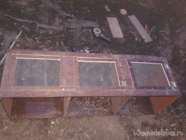 У меня было пару ящиков, вот их я использовал под маточники. Только один собрал из остатков шкафа, который посередине.
