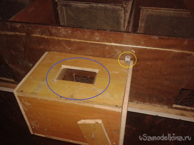 Так как после окрола нужно иметь доступ в гнездовое отделение и проверить его на наличие мертвых крольчат, то я сделал сверху на домиках небольшие люки для доступа внутрь.