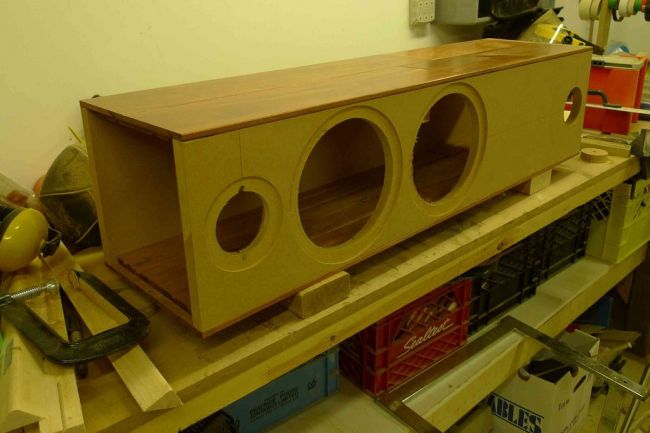 Этап 8. В задней панели вырежьте проем для динамиков.