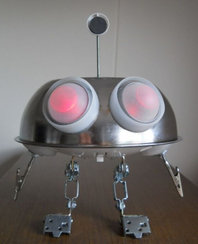 При наличии б/у деталей из металла, можно самому изготовить оригинального робота, очень схожего с пришельцем из фильма -фэнтези «Батарейки не прилагаются».