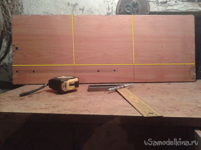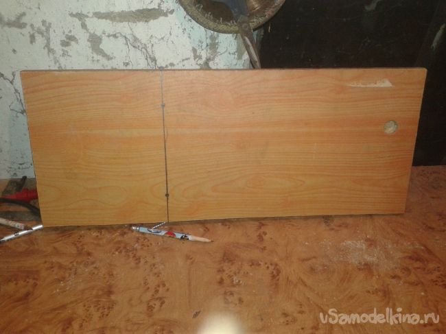 Шаг 3. Для начала нам понадобится основная заготовка равная восьмидесяти пяти сантиметрам. На расстоянии от края в тридцать пять сантиметров чертим поперечную черту