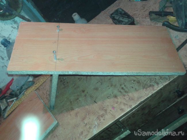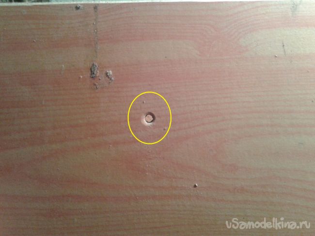 Для этого берется деревянный шпон, вгоняется в отверстие и зашлифовывается. Но так как полка у меня бкдет висеть в мастерской, я не слишком переживаю по этому поводу.