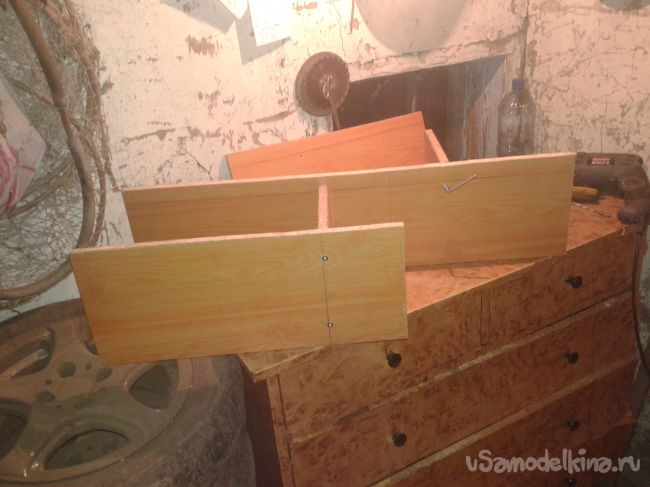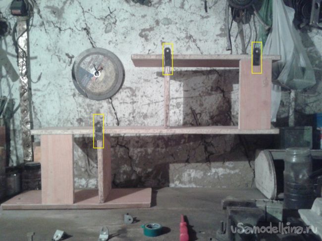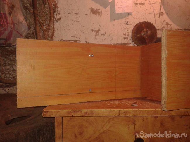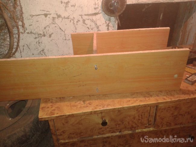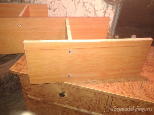 Шаг 8. Соединяем собранную деталь с основной заготовкой А. практически все детали соединялись мебельными саморезами. Получается часть будущей полки.