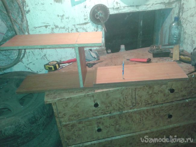 Следующим этапом идет определение длины основной части полки. Я решил остановиться на восьмидесяти пяти сантиметрах. Не большая, но и не маленькая. (на фото отмечено красным).