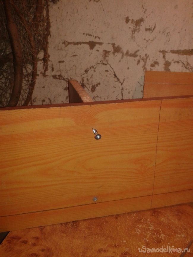 Шаг 15. Теперь берем наши выпиленные стяжки и крепи их к деталям Б1-А и Б2-А с задней стороны. Крепил я их саморезами по дереву, так как посчитал что мебельные саморезы будут лишними на такой маленькой детальке