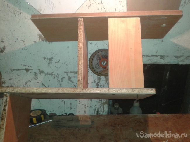 Как я писал выше, как бы я не старался выводить все детали полки под угол девяносто градусов, конструкция почему-то имеет кособокий вид. Не знаю с чем это связано. Может быть с неправильной сверловкой отверстий в торцевых деталях. Они внутри наверное имеют угловой наклон. Больше у меня предположений нет.