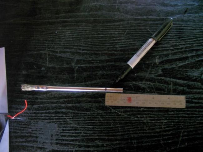 Вентилятор нужен для того, чтобы нагнетать кислород в печь. Он устанавливается на специальных ножках, это препятствует плавке его корпуса в случае нагревания корпуса печи. Для изготовления ножек понадобится кусок металлической трубы, можно использовать ручки от кисточек. Длина трубочек должна быть порядка 2-ух см, всего их нужно четыре.