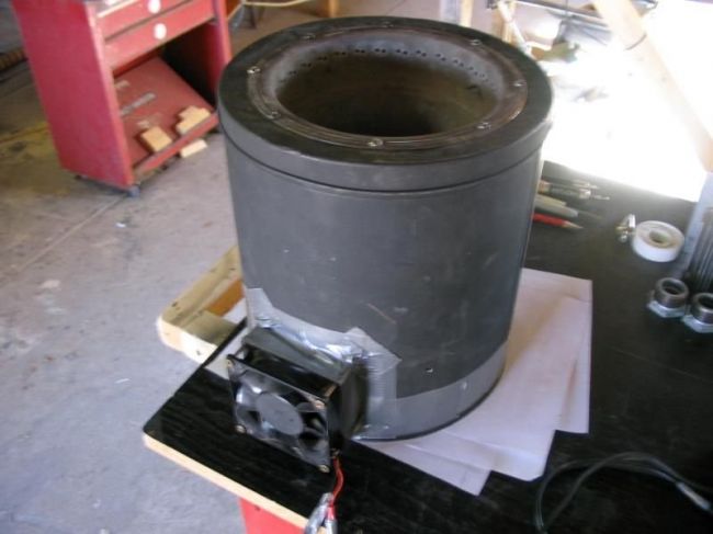 Вот и все, теперь печь готова к службе. Можно загружать в нее топливо, подойдут любые щепочки, угольки и тому подобное. После разжигания нужно сразу включать вентилятор, после этого можно будет увидеть, как интересно работает это простое устройство.