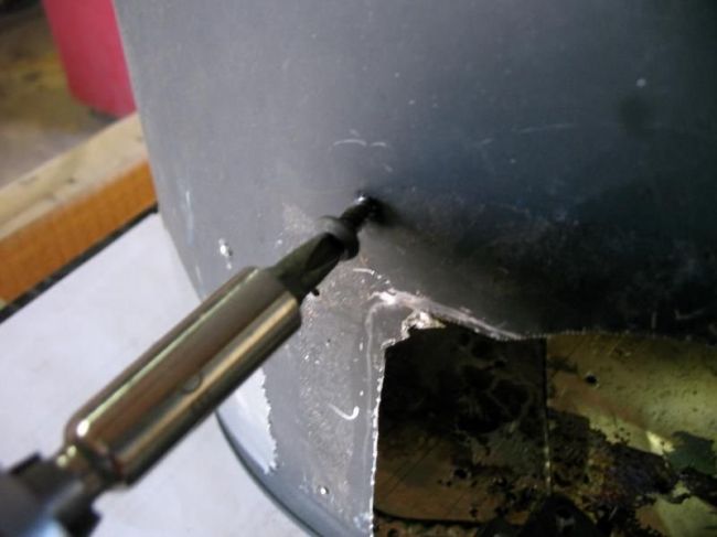 Вырезать такое окно проще всего с помощью Dremel и режущей насадки. Еще нудно просверлить 4 отверстия под шурупы, с помощью них к печи будет крепится кулер.